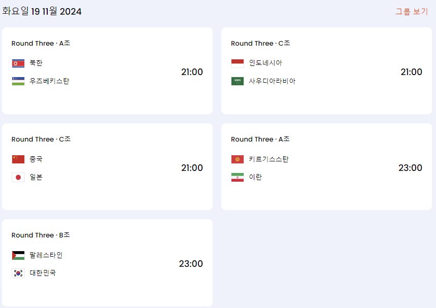 - 2024년 11월 19일 : 대한민국 VS 팔레스타인