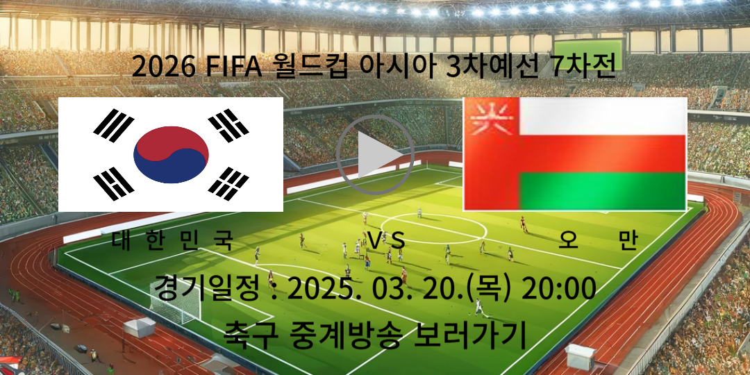 지금부터 2026 FIFA 월드컵 아시아 지역 3차 예선 대한민국 VS 오만 경기에 대한 안내를 드립니다. 이번 경기는 대한민국이 월드컵 본선에 진출하기 위해 중요한 경기 중 하나로, 많은 팬들이 기다리고 있습니다.